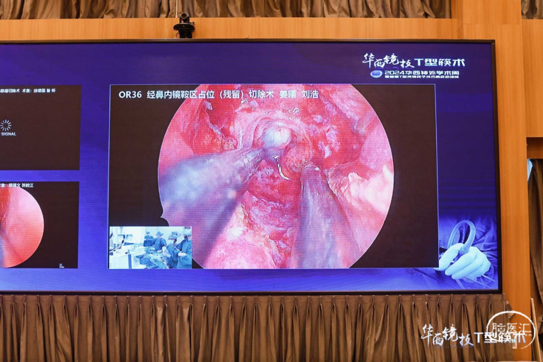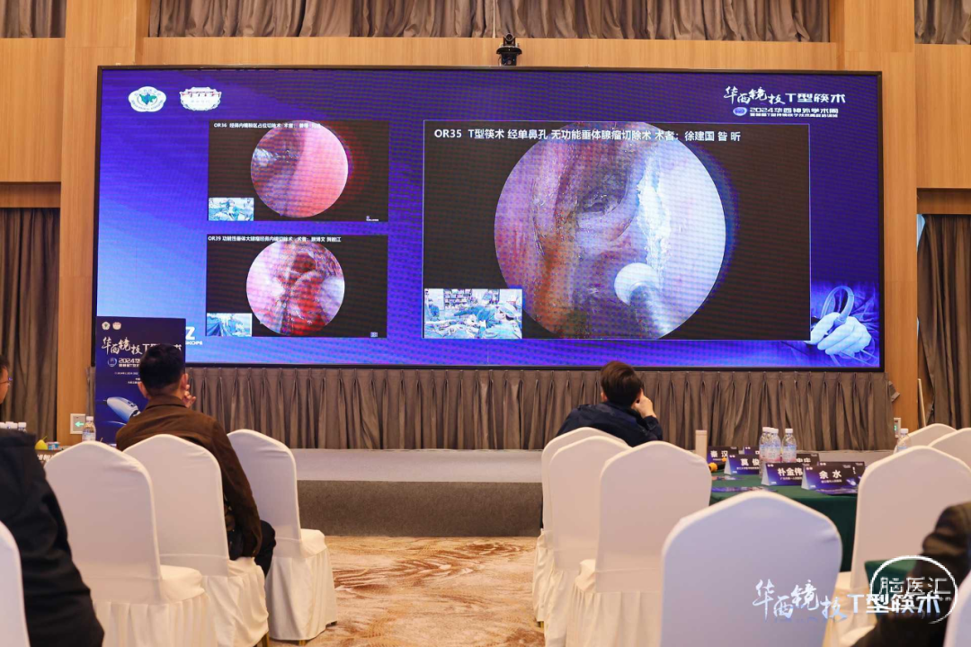 3. 手术观摩:3天时间内华西神经外科团队共直播了17台内镜手术,学员亲眼见证手术主刀医生的每一个操作手法,深入理解手术流程和团队配合,主刀医生实时讲解手术的每个步骤,会场讨论嘉宾互动热烈。手术室和会场学员共同领略了T型持镜筷子技术的内镜实战效果,以及在这一技术加持下对经典经鼻内镜手术操作方式的改进。