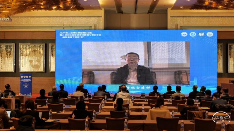 天津医科大学肿瘤医院院长郝继辉教授因事无法赶到会场,特别录制视频对参会领导、嘉宾表示热烈欢迎与衷心感谢。他表示,脑胶质瘤一直是神经系统肿瘤的一类难治性疾病,治疗成效尚不尽如人意。天津医科大学肿瘤医院将谨守“以人为本,科技创新;以患为本,共创未来”的信念,不断搭建神经肿瘤学术交流平台,让国内外专家、学者能够共同探讨神经肿瘤领域的最新进展、分享临床经验、交流学术心得。(图5)
