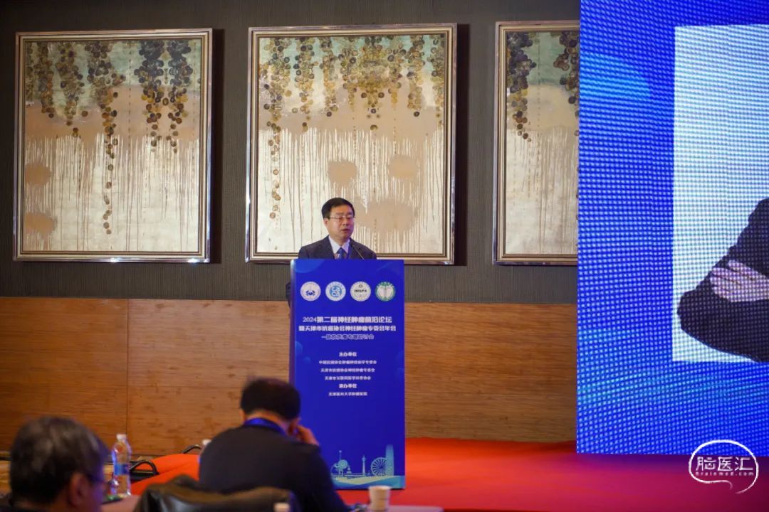 初冬时节,相约美丽天津。2024年11月29日-30日,由中国抗癌协会肿瘤神经病学专委会、天津市抗癌协会神经肿瘤专委会及天津市互联网医学科普协会主办,天津医科大学肿瘤医院承办的“第二届神经肿瘤前沿论坛暨天津市抗癌协会神经肿瘤专委会年会——脑胶质瘤专题讨论会”在天津召开。会议邀请首都医科大学附属北京天坛医院、复旦大学附属华山医院、中国医学科学院北京协和医院、中山大学附属肿瘤医院、辽宁省肿瘤医院、天津医科大学总医院、天津大学环湖医院等20余位国内神经肿瘤外科专家及7位从事神经肿瘤研究的著名教授围绕脑胶质瘤的临床治疗及基础研究作专题报告。本次会议分为圆桌会议和主场会议,其中主场会议由脑医汇协助进行线上直播,会议来自全国各地的专家及同仁100多人进行线下交流,大约有800人线上参会。