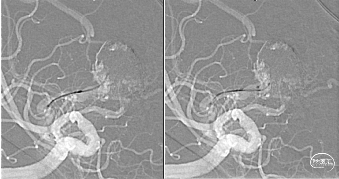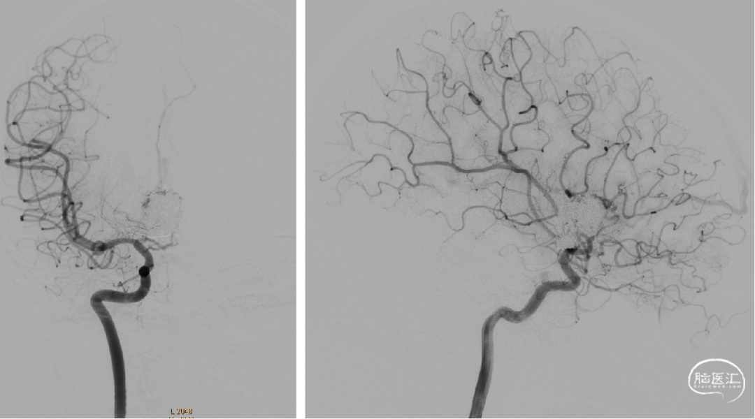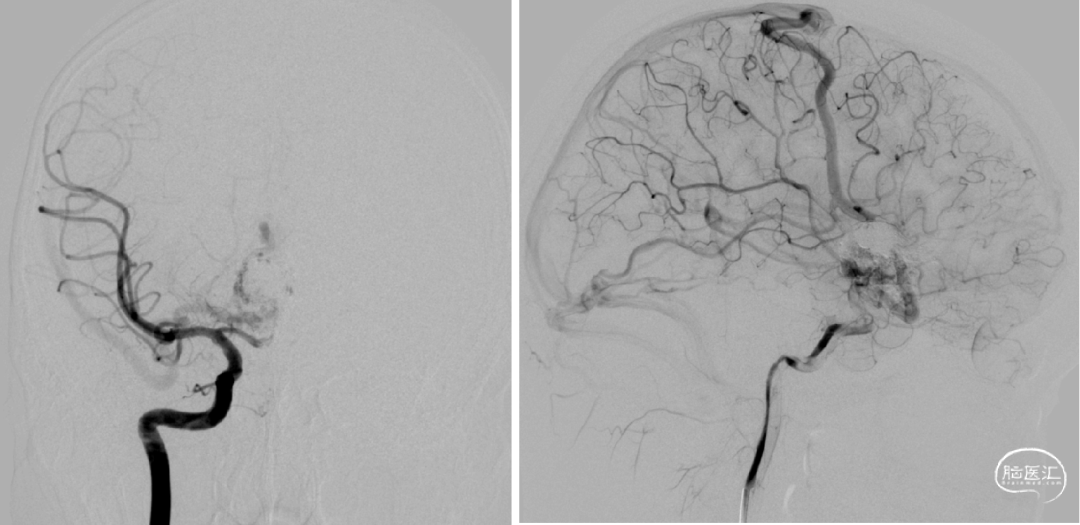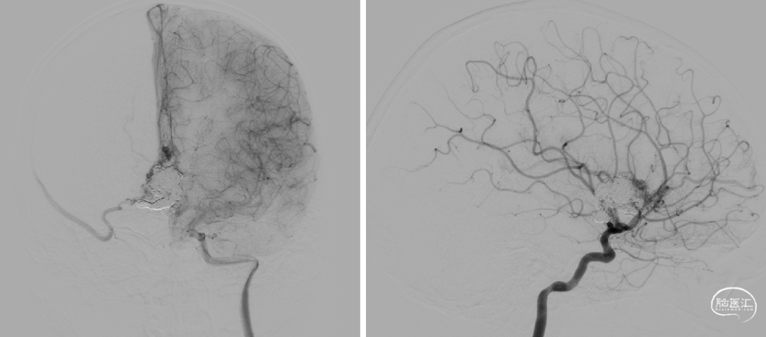 🔹诊断:右侧额叶动静脉畸形栓塞术后