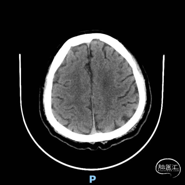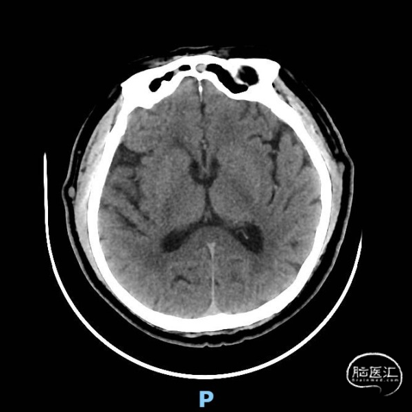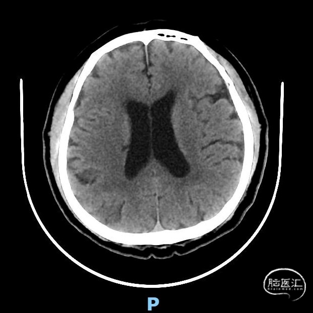 术前颅脑CT示:右侧脑室旁陈旧性腔梗。