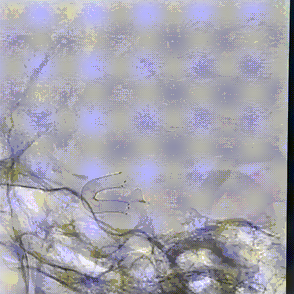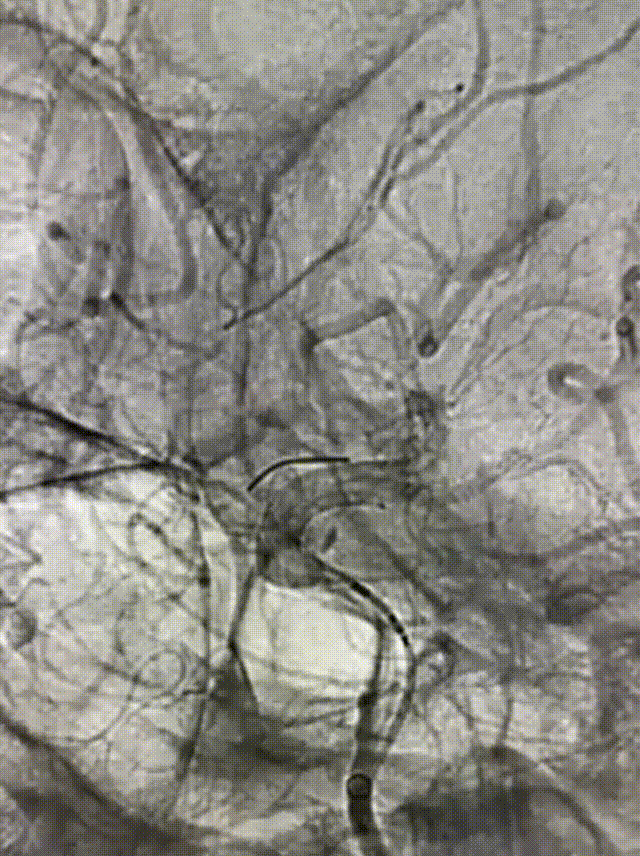 通桥麒麟™血流导向密网支架完全释放后造影,支架贴壁良好,位置可。