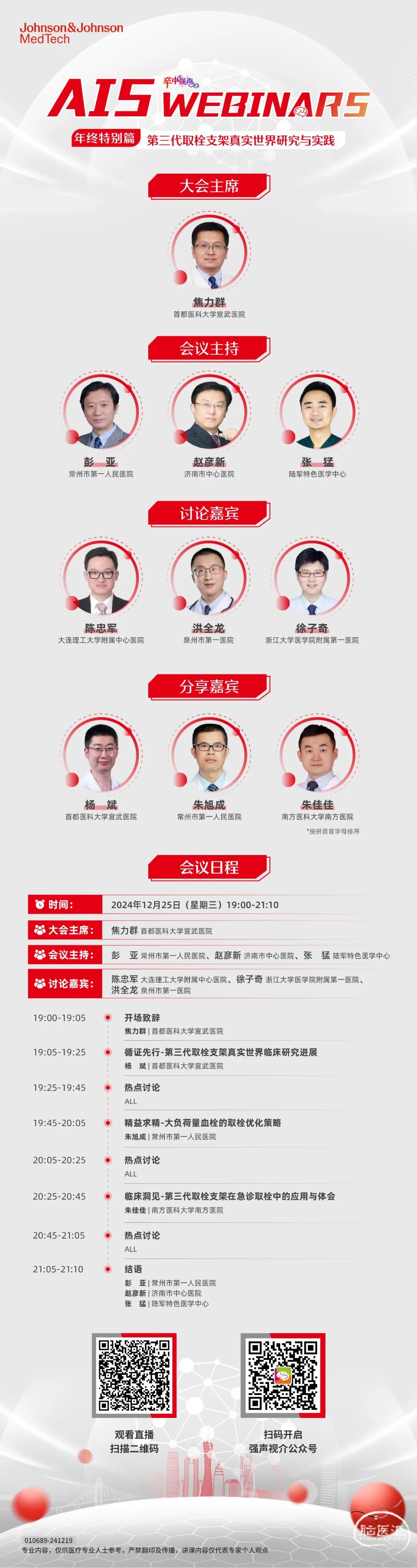 App端:点击下方图片观看卒中强声-年终特别篇 第三代取栓支架真实世界研究与实践
