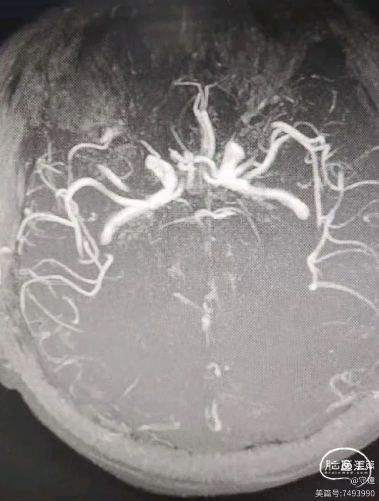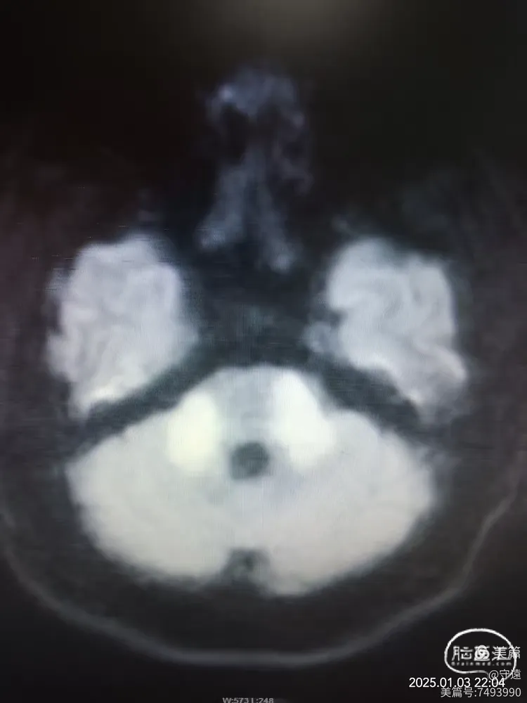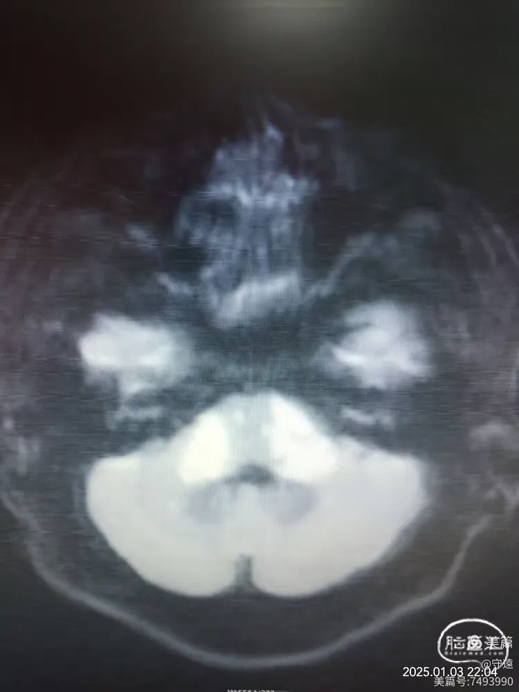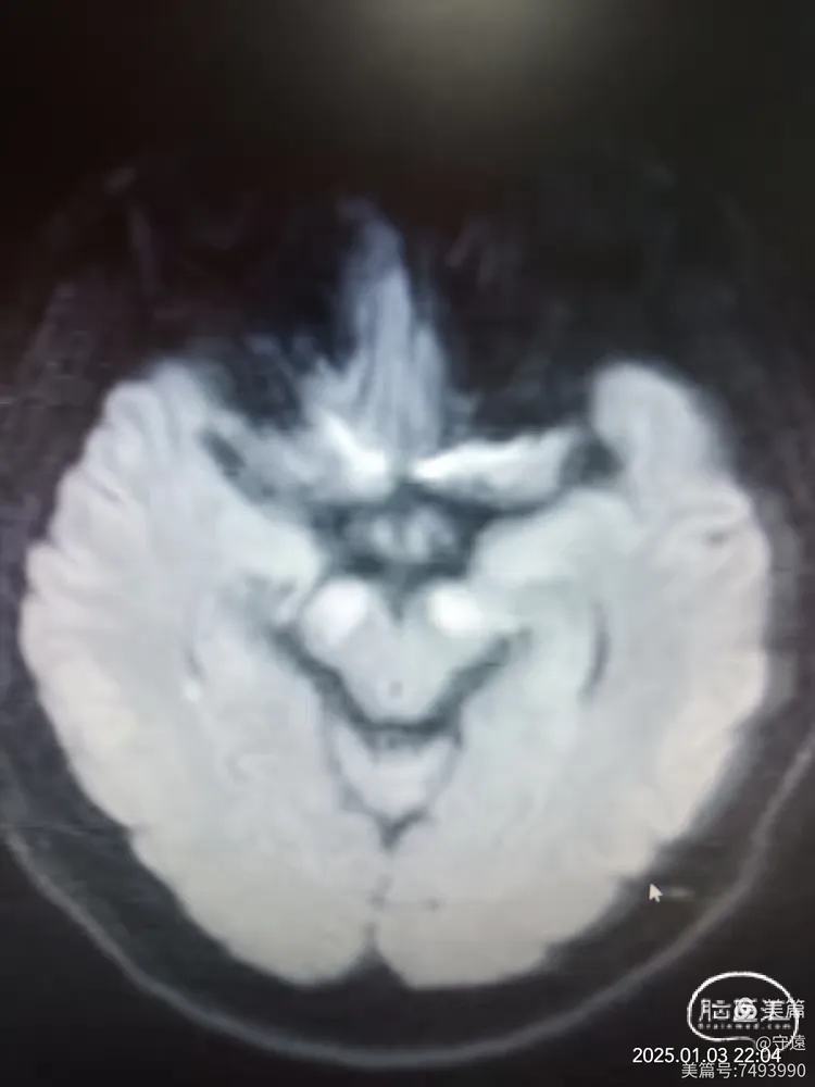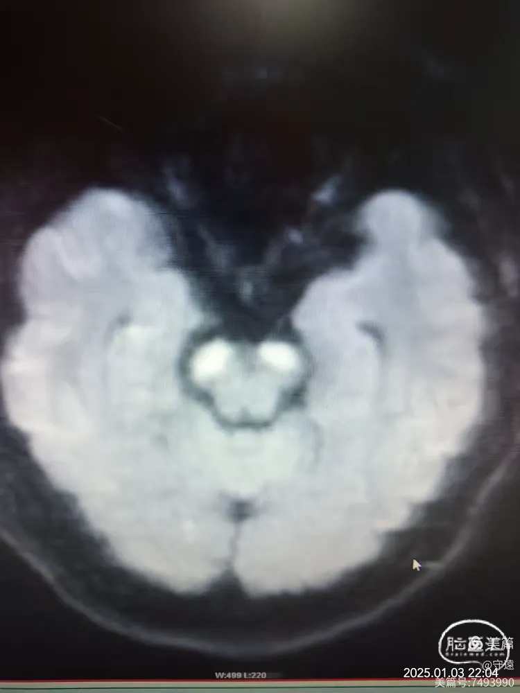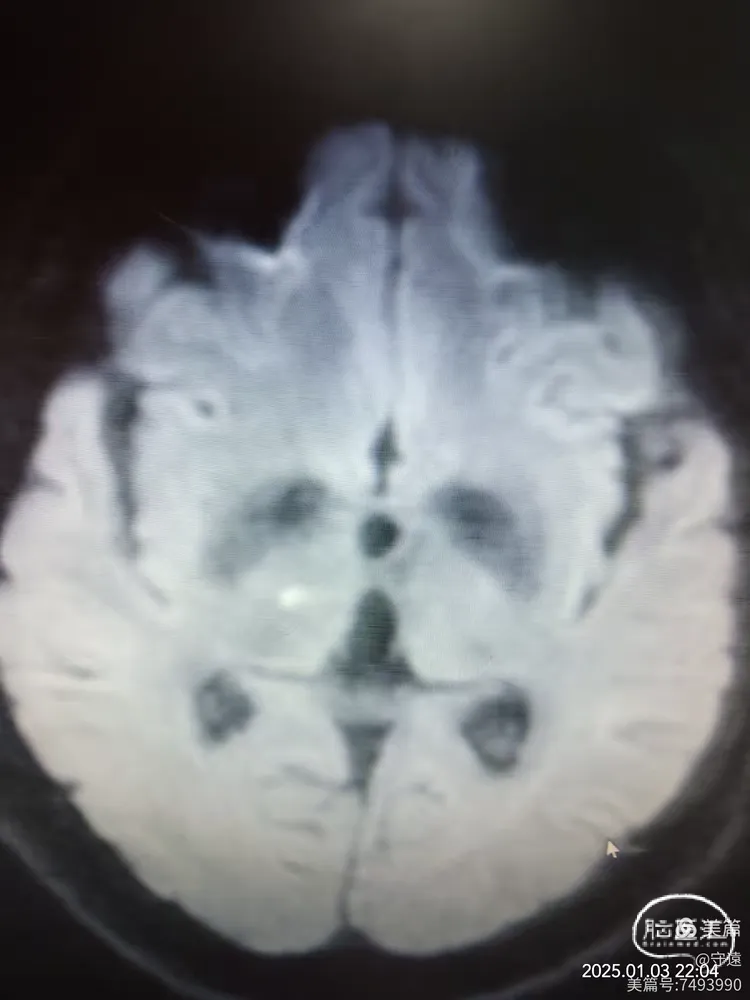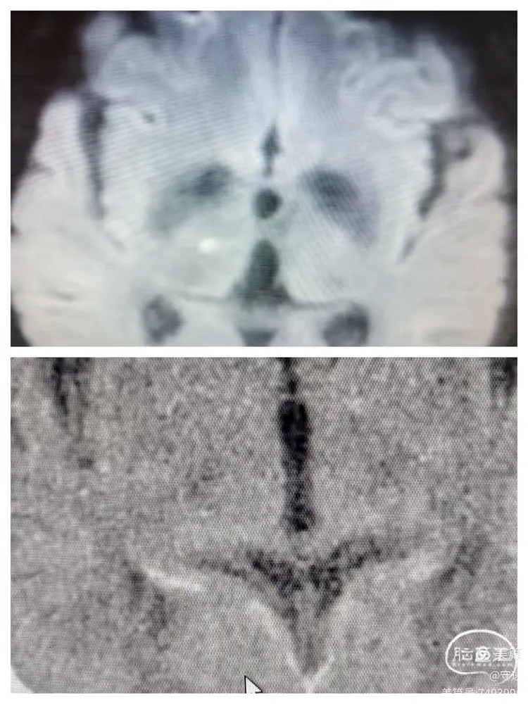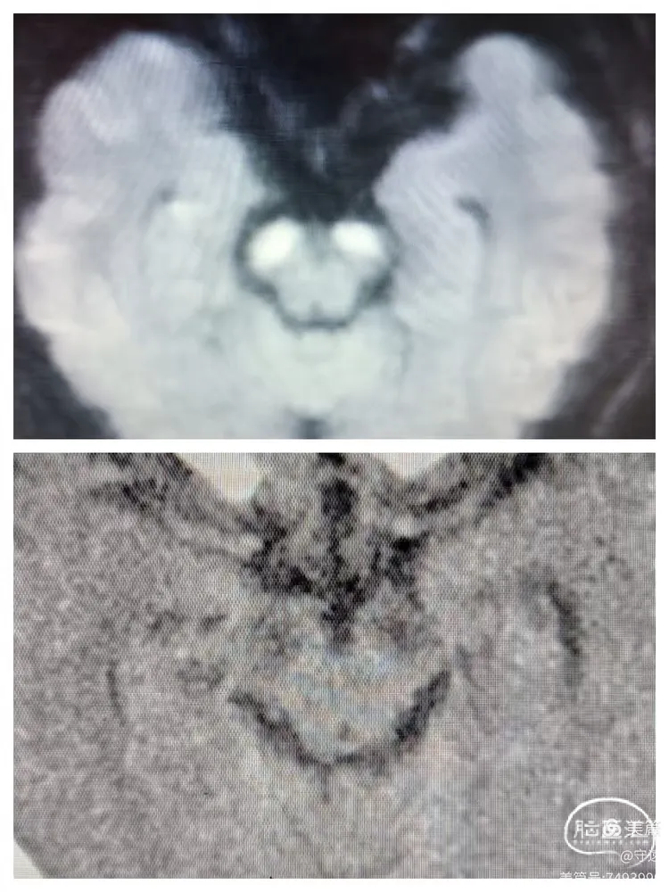 核磁显示:双侧桥臂,右侧丘脑梗塞。
