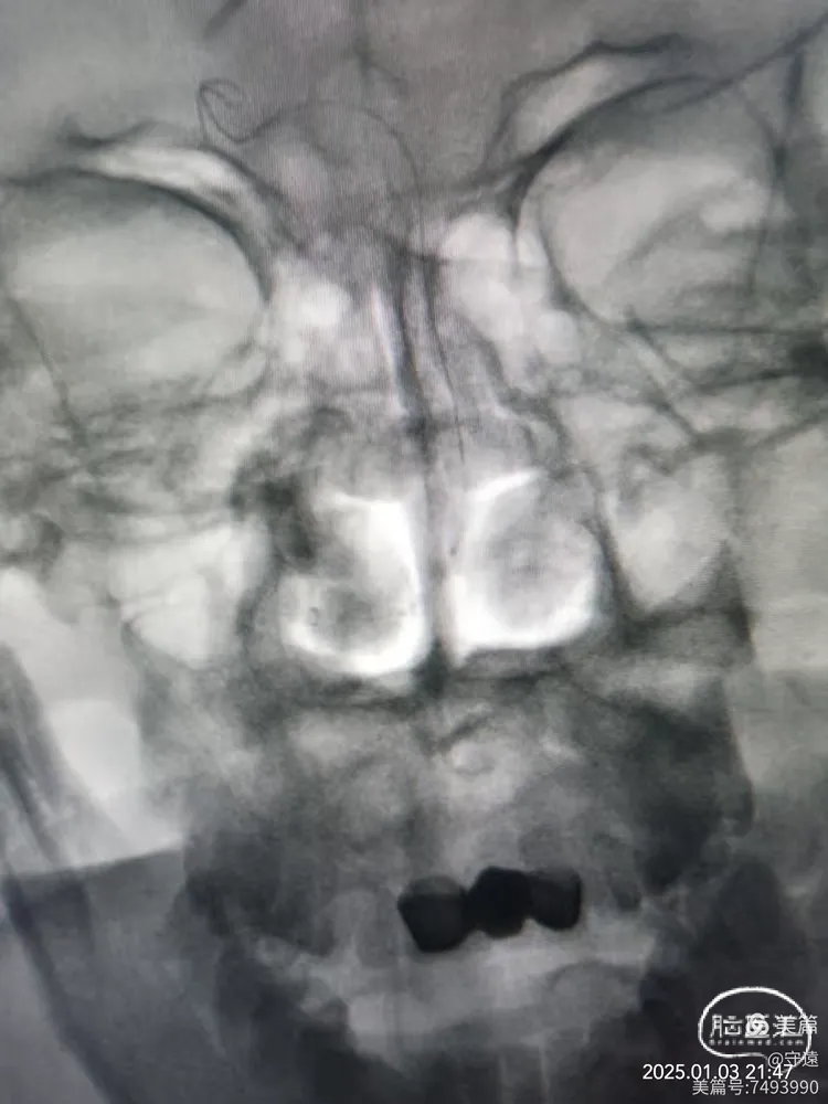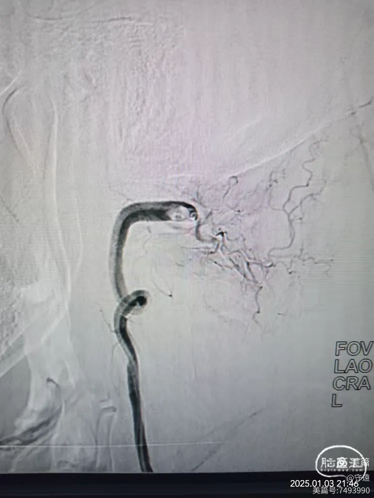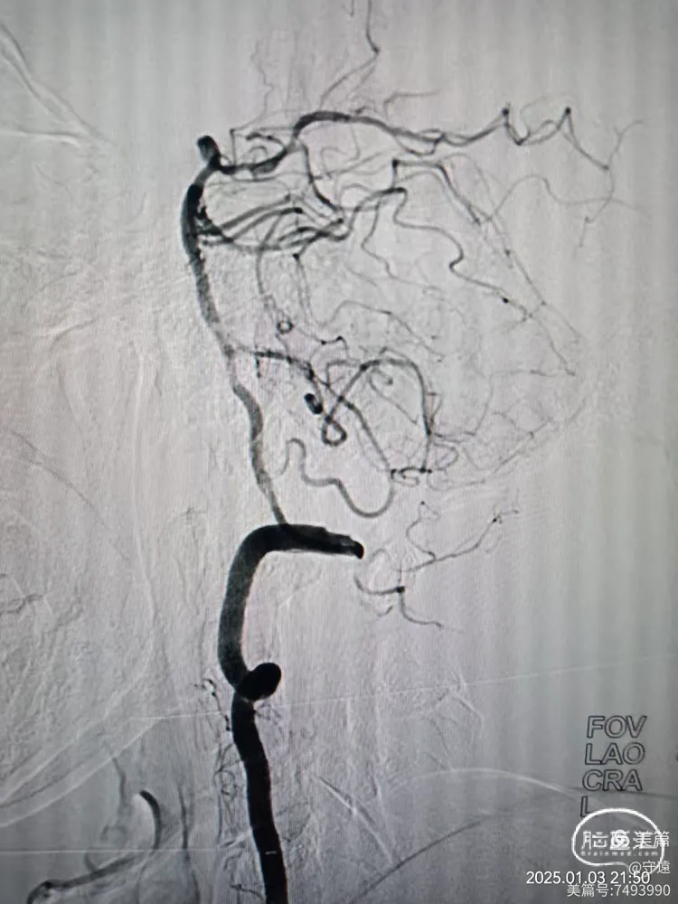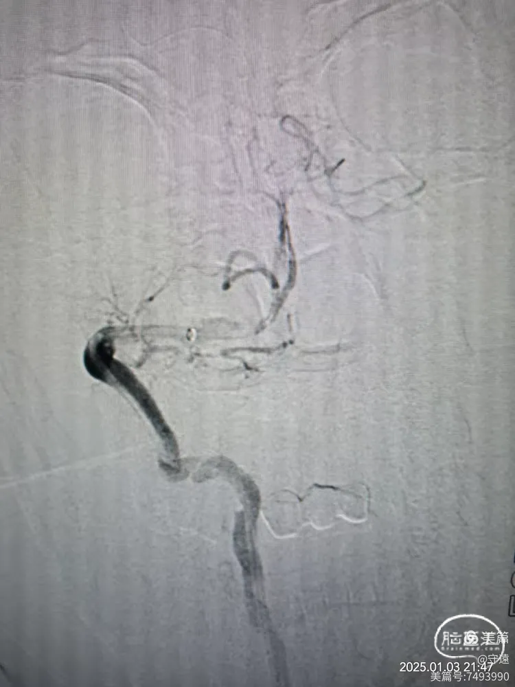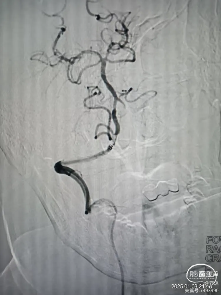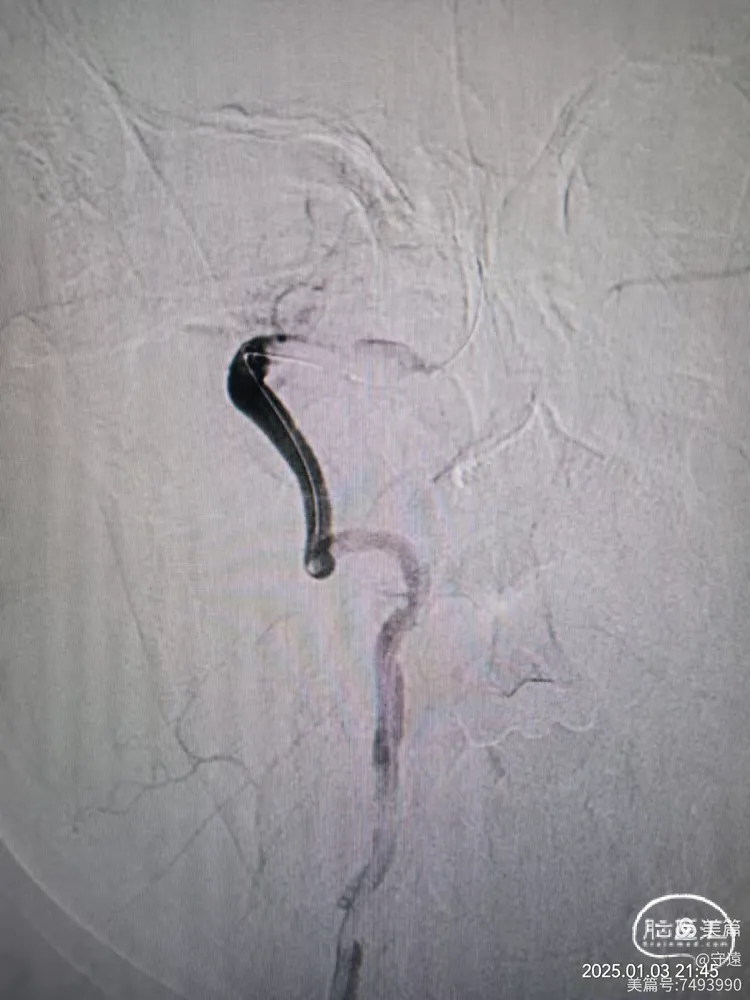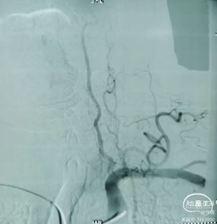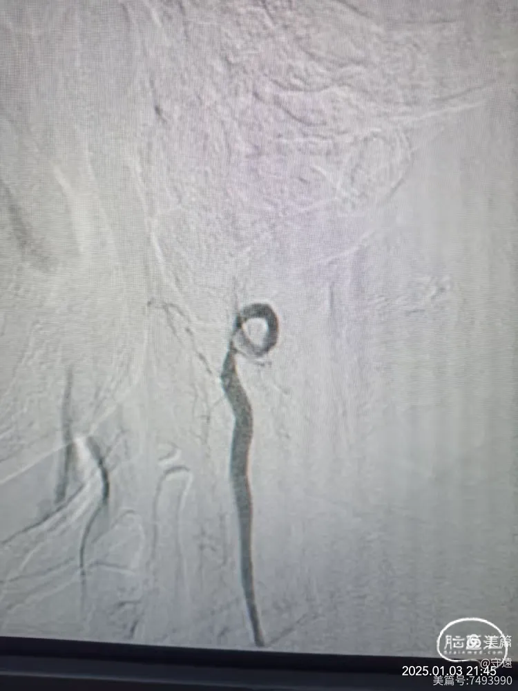 回撤导管至V3段造影,狭窄不明显,血流通畅。