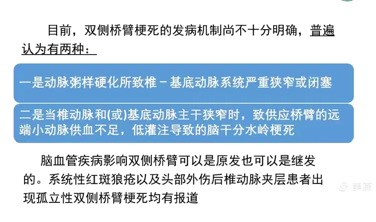 桥臂梗死隶属于AICA(小脑前下动脉)综合征,可表现为一种或多种临床症状,脑神经受累主要为Ⅴ、Ⅶ、Ⅷ对脑神经。