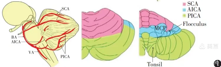 由脑桥基底部对侧脑桥核发出的脑桥小脑纤维构成,是联系脑桥与小脑的联系通路,主要由小脑前下动脉(AICA)支配,小脑上动脉(SCA)也参与部分供血(图1)。
