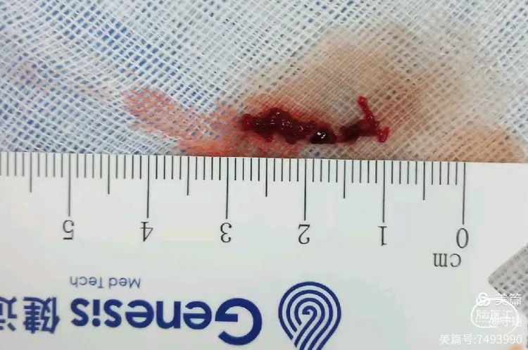 撤出球囊,踹马桶抽吸出暗红色血栓。