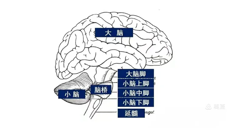 桥臂又称小脑中脚(middle cerebellar peduncle,MCP),连接脑桥和小脑,是3对小脑脚中最大者,是连接大脑皮质和脑桥、小脑的中继站。