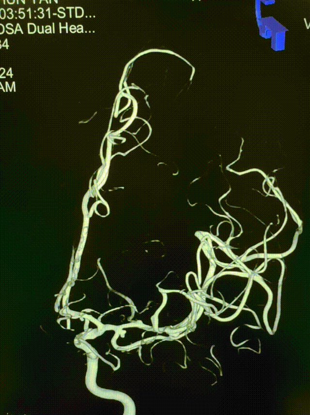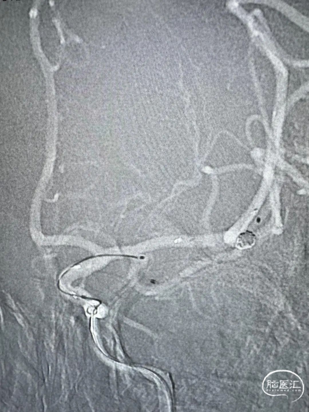 动脉瘤完美栓塞,一个支架,两根微导管,一根微导丝主导全程,填塞致密。