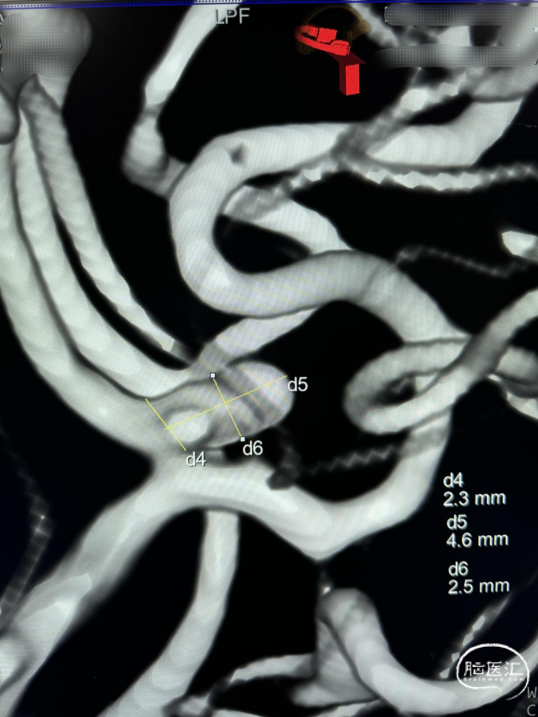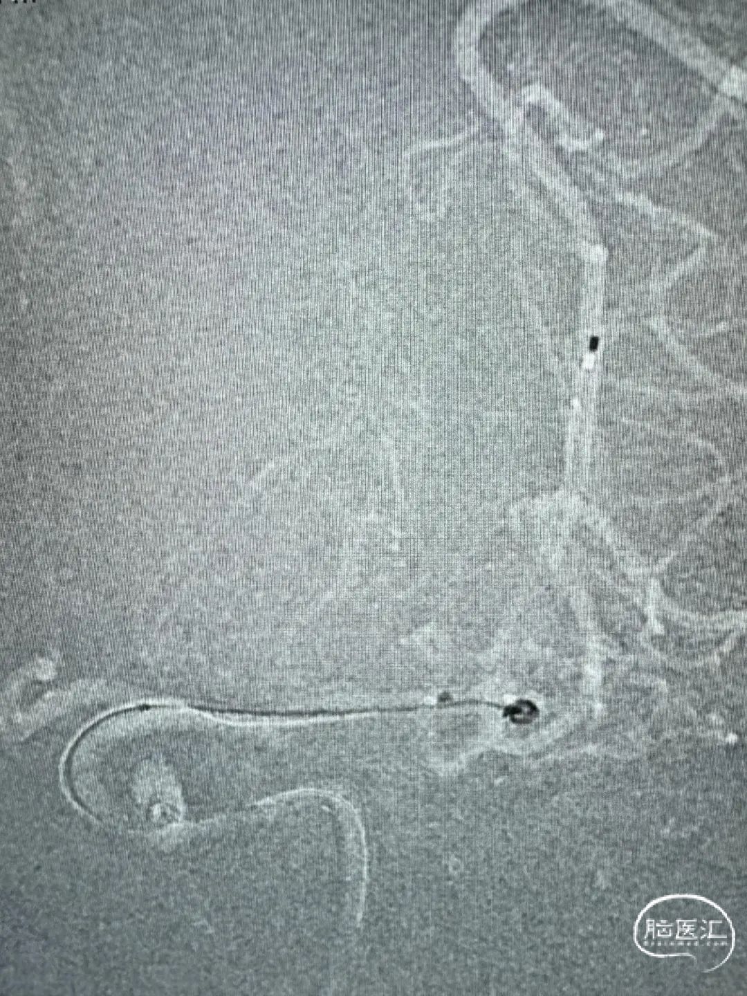 另有报道,动脉瘤尾端在M1段打开可能会波及豆纹动脉,故尽量选用水平段释放支架,对穿支血管尽量减少影响。