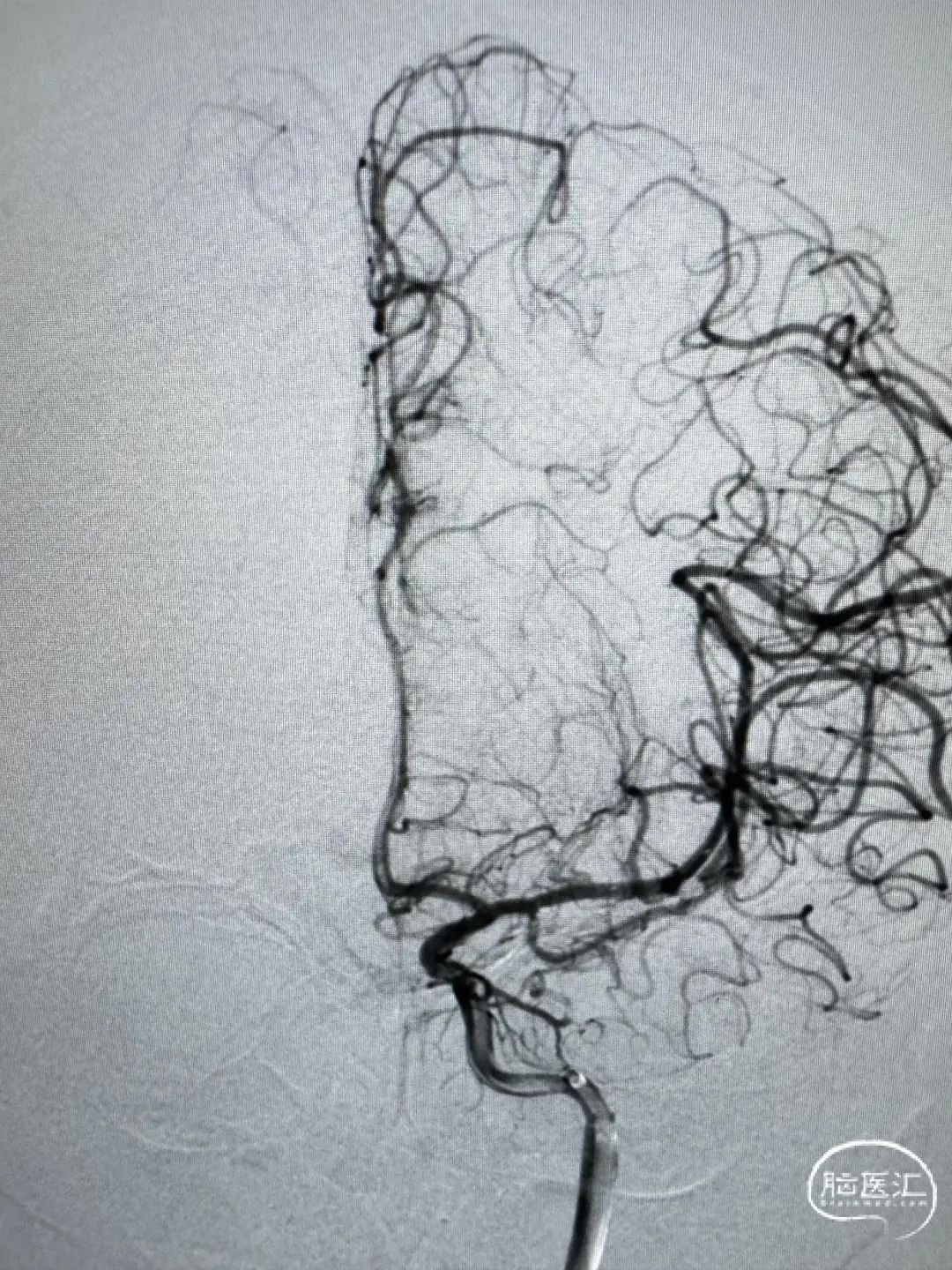 颞干处摆支架,大脑中动脉两个支架负担比较重,缺血痉挛事件发生率高。