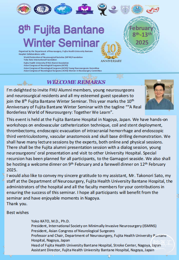 【2月8日11:00直播】8th Fujita Bantane Winter Seminar,国际神经外科教育与培训系列网课