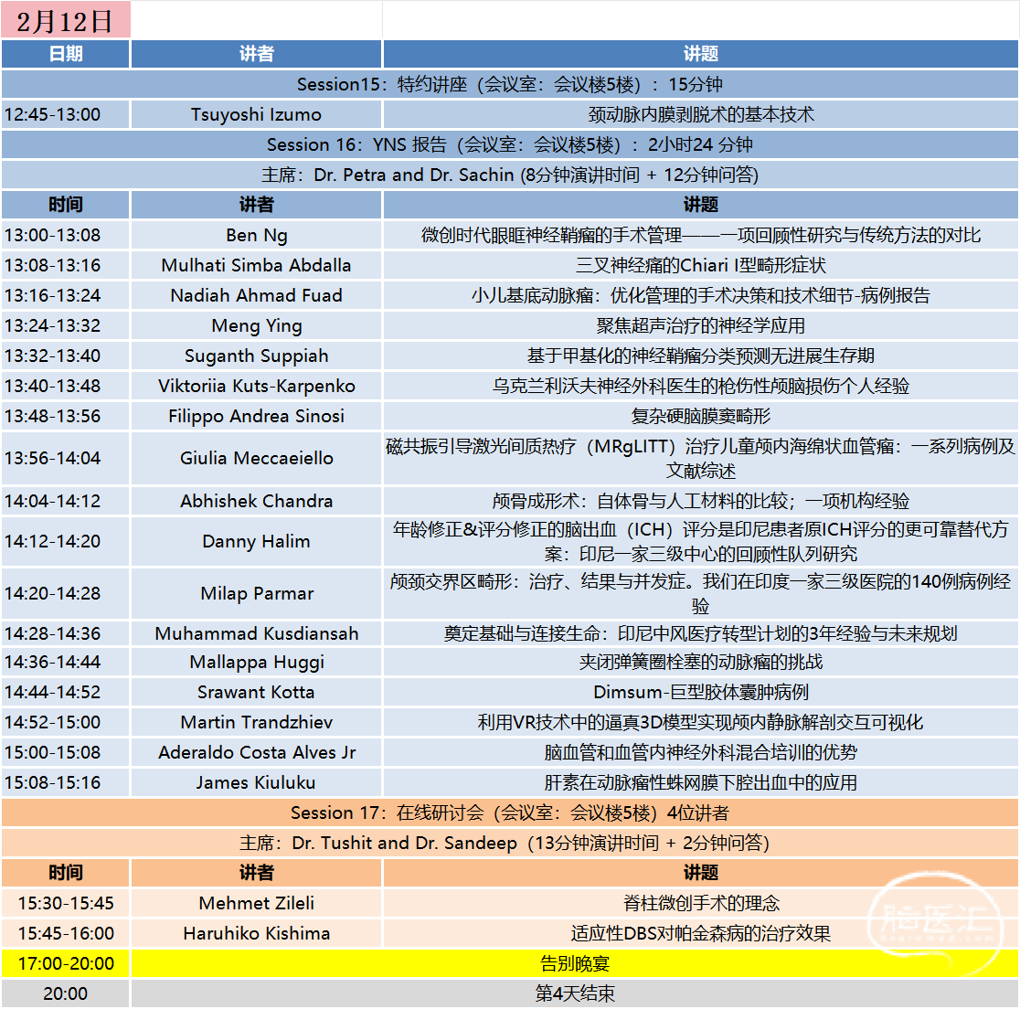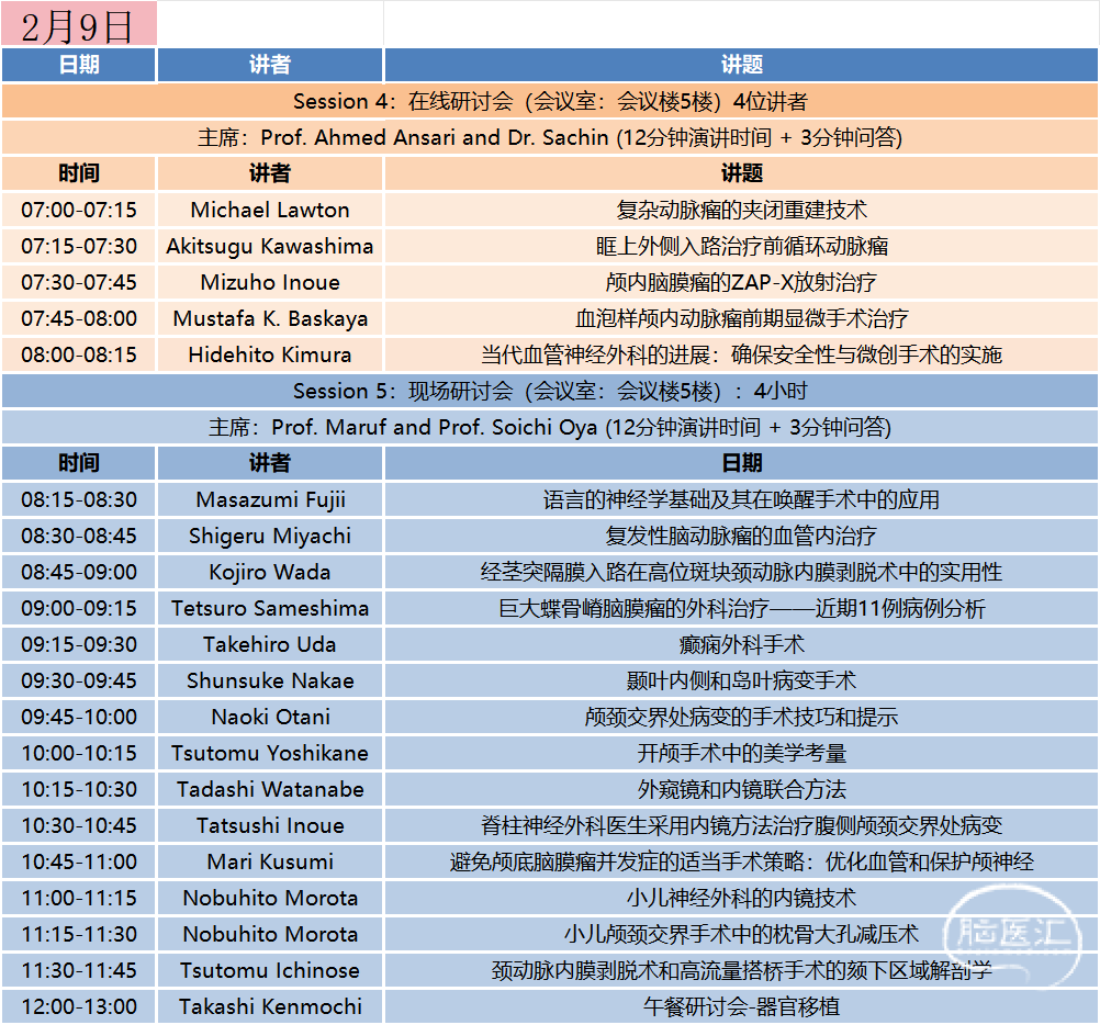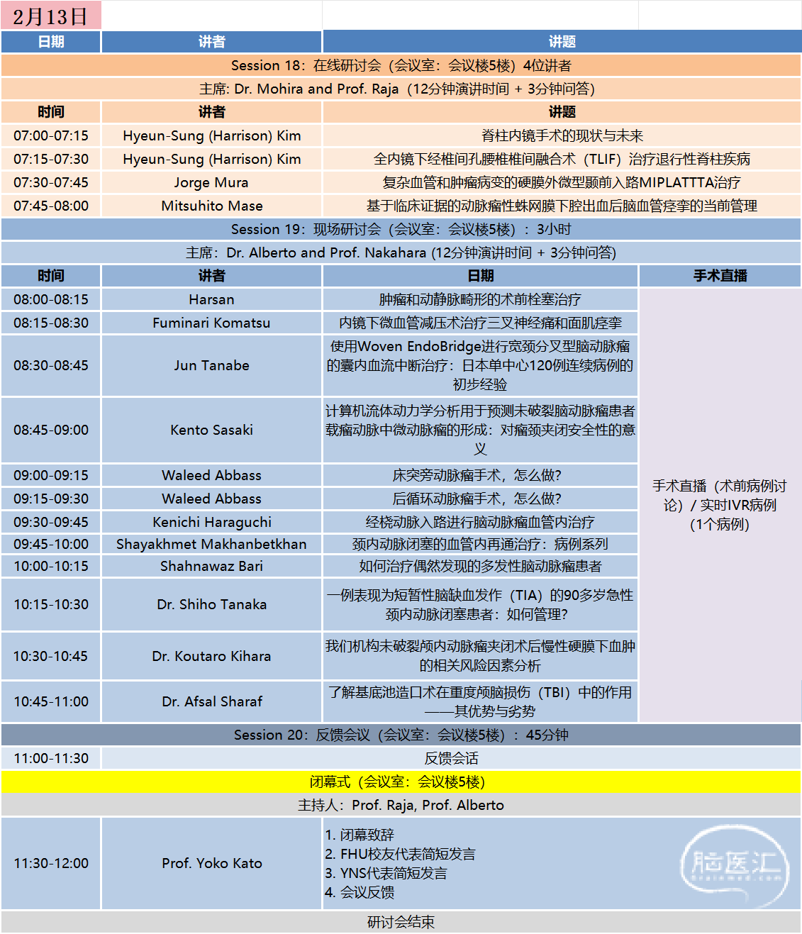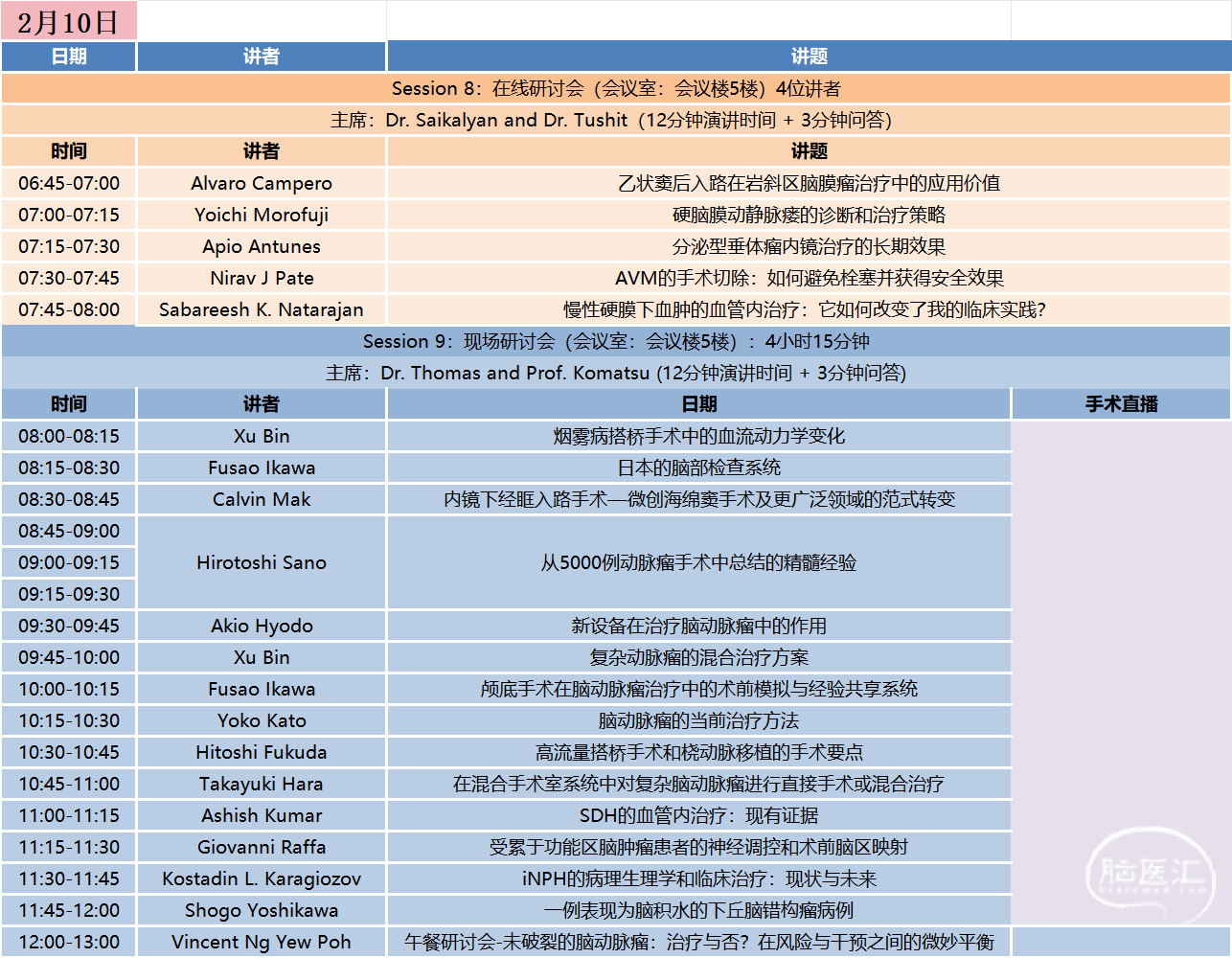 注:会议信息由复旦大学附属华山医院徐斌教授提供,脑医汇旗下神外资讯直播技术支持,欢迎观看!