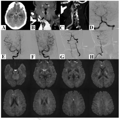 作者指出,对于脑血管造影阴性的SAH,在鉴别诊断中应考虑栓塞性中风的可能性。可进一步行头颅MRI和颈部血管造影检查,或者在首次CTA或DSA检查时对颈部血管进行全面的评估,排查引起血栓栓塞的危险因素。