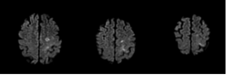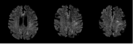 病例2:66岁女性患者,吸烟,既往高血压病史。因突发右侧眼眶周围疼痛、畏光和看到漂浮物而收治入院。头颅CT提示前纵裂SAH。次日DSA未见颅内血管异常,左侧颈内动脉近端可见粥样硬化斑块引起90%以上狭窄。6小时后,患者突然出现失语,头颅MRI-DWI图像显示左侧大脑中动脉供血区多发弥散受限病灶,提示左侧颈内动脉斑块脱落引起的继发性血栓栓塞。患者给予口服阿司匹林治疗,次日行左侧颈动脉内膜剥脱术,术后患者恢复顺利。