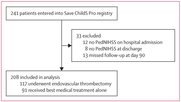 图1. Save ChildS Pro登记纳入流程图。PedNIHSS=儿童国家卫生研究院卒中量表。