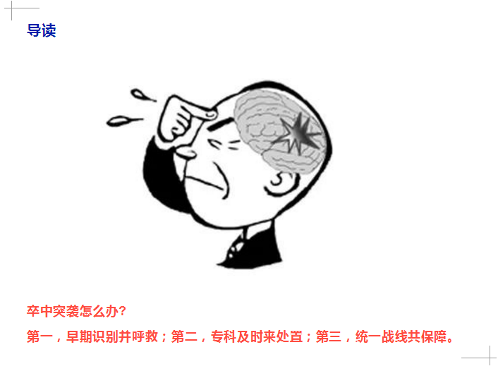 但我们仍旧会面对卒中突袭,我们只能直接面对,在此紧急关头,我们不要逃避,也不要慌乱,请听我道来:最要做的三件紧要事。