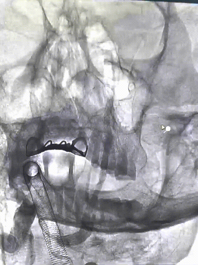 造影测量血管直径3.5,选择4.0*30mm 密网支架释放。