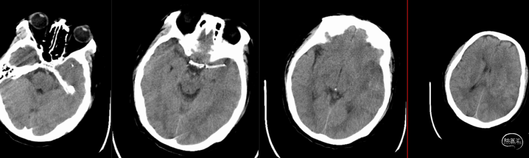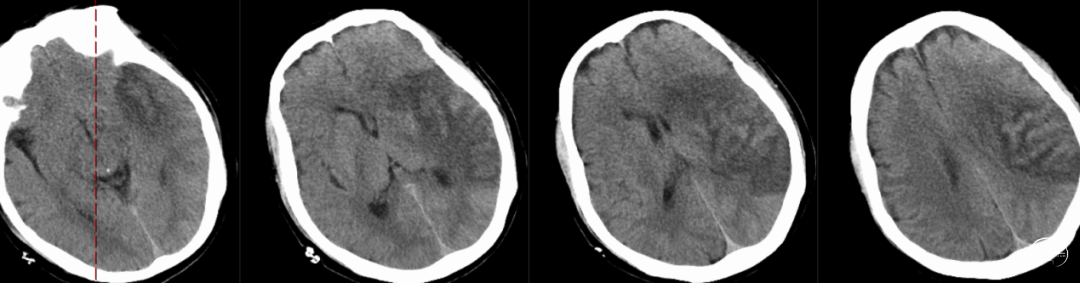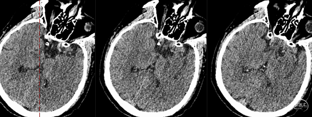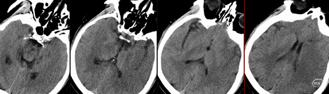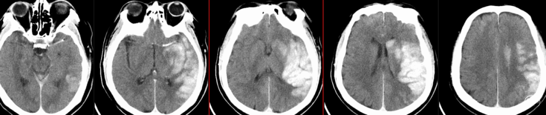 头颅CT(12/3):左侧颞叶可以低密度影,左侧大脑中动脉可疑高致密征。
