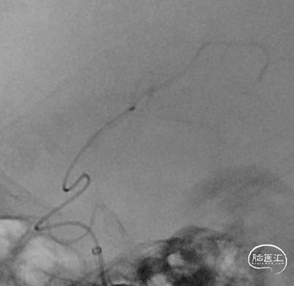 微导管到位左侧大脑中动脉下干,造影证实真腔。