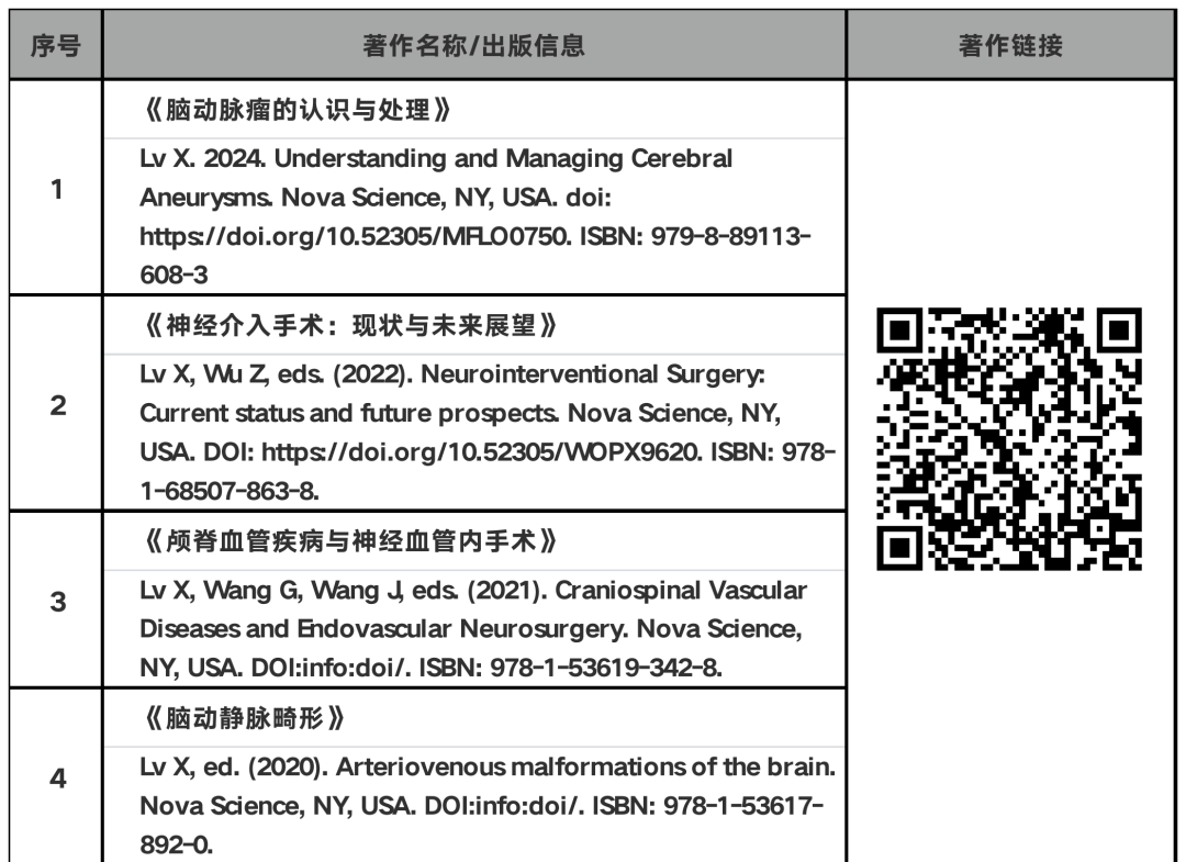 多次担任国际会议主席及学术委员会委员,多次作国内外会议的主题发言;Neuroscience Informatics杂志副主编,Frontiers in Neurology杂志副主编,Interventional Neuroradiology、Stroke and Vascular Neurology、Journal of Neuroradiology、The Neuroradiology Journal、World Journal of Radiology、Journal of Neurorestoratology和《科技纵览》杂志编委;世界介入神经放射学会World Federation of Interventional Therapy Neuroradiology(WFITN)、世界卒中学会World Stroke Organization(WSO)和References Citation Analysis(RCA)会员。