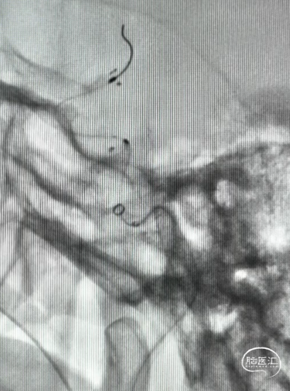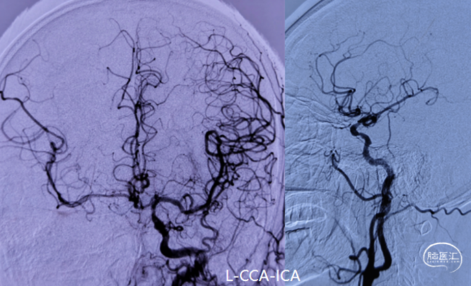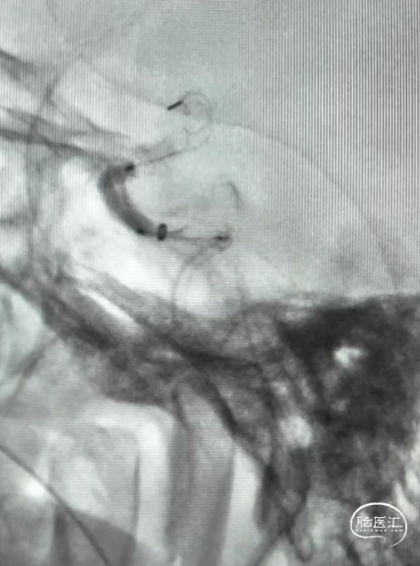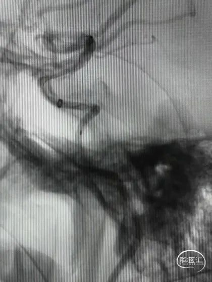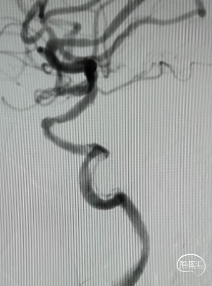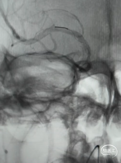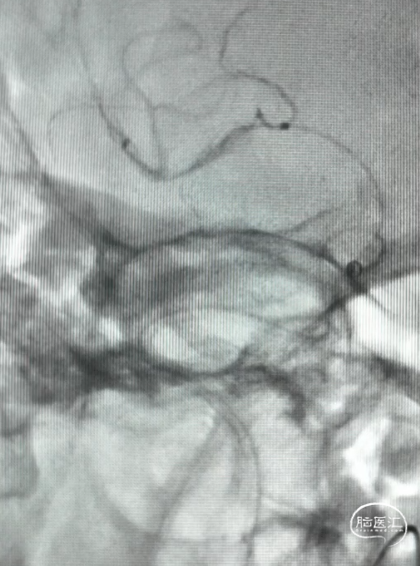 右侧后交通动脉开放,右侧颈动脉颅内段浅淡显影。