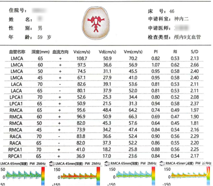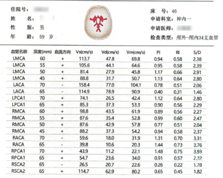 血流监测:连续监测TCD压颈试验证实右侧颈内动脉血流通畅。