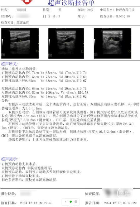 简要病史:1月前,晨起后出现左下肢行走不灵活伴有言语含糊,持续1-2分钟缓解,未重视。1周前症状再发,持续不缓解,外院诊疗后症状消失,同时发现右侧颈内动脉闭塞。