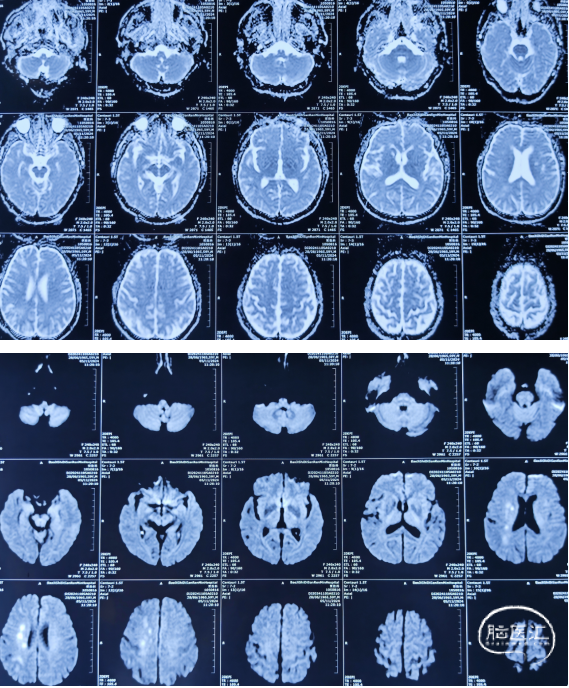 右侧放射冠多发亚急性脑梗,右侧颞叶软化灶伴周围胶质增生;多发陈旧性脑梗死;脑白质脱髓鞘改变;右侧颈内动脉闭塞,颅内动脉多发不同程度狭窄。