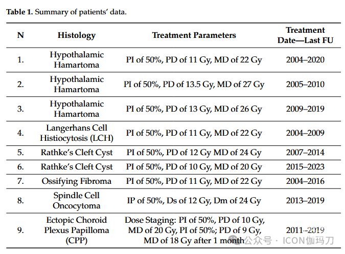从1993年到2024年,超过16,000名患者在维罗纳AOUI接受了伽玛刀放射外科。其中,11例罕见鞍区肿瘤患者接受GK治疗,其中9例患者至少随访5年,符合本研究条件。