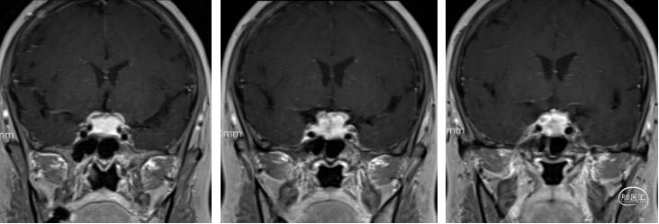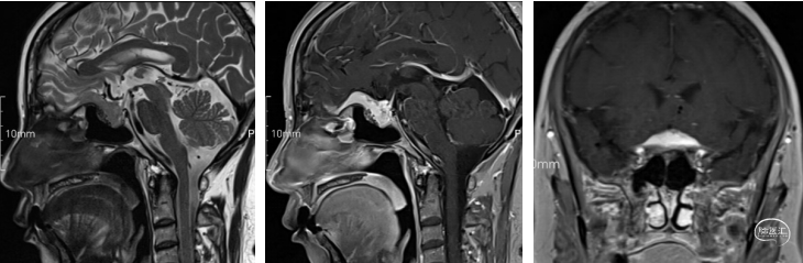 术后核磁:肿瘤切除干净,垂体及垂体柄保留完好,术区无出血。