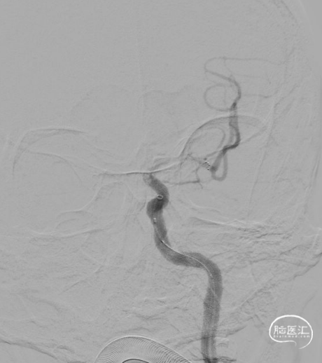 术后24小时复查头颅CT未见出血,CTA提示血管通畅。予加用氯吡格雷单抗抗血小板聚集。