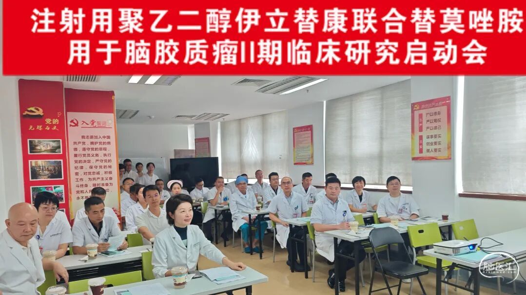“经多方筹备与论证,注射用聚乙二醇伊立替康联合替莫唑胺用于脑胶质瘤II期临床试验项目,即日起在我院神经外科正式启动!”