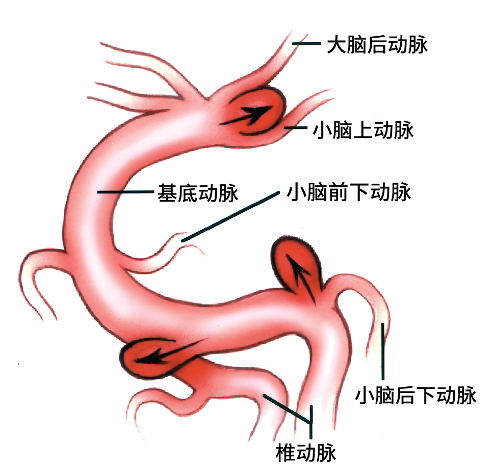 接近15%的囊状动脉瘤发生在椎-基底动脉系统,其中大多数(63%)位于基底动脉分叉处。