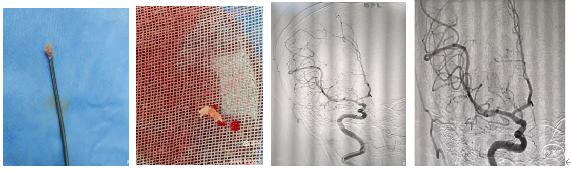 4、快速二次接续抽吸:清理可能的残余血栓后造影右侧大脑中动脉血流通畅,未见明确血栓逃逸和狭窄。结束手术。