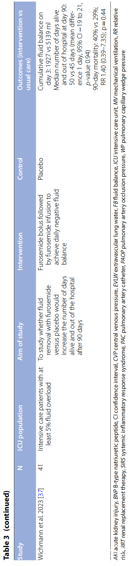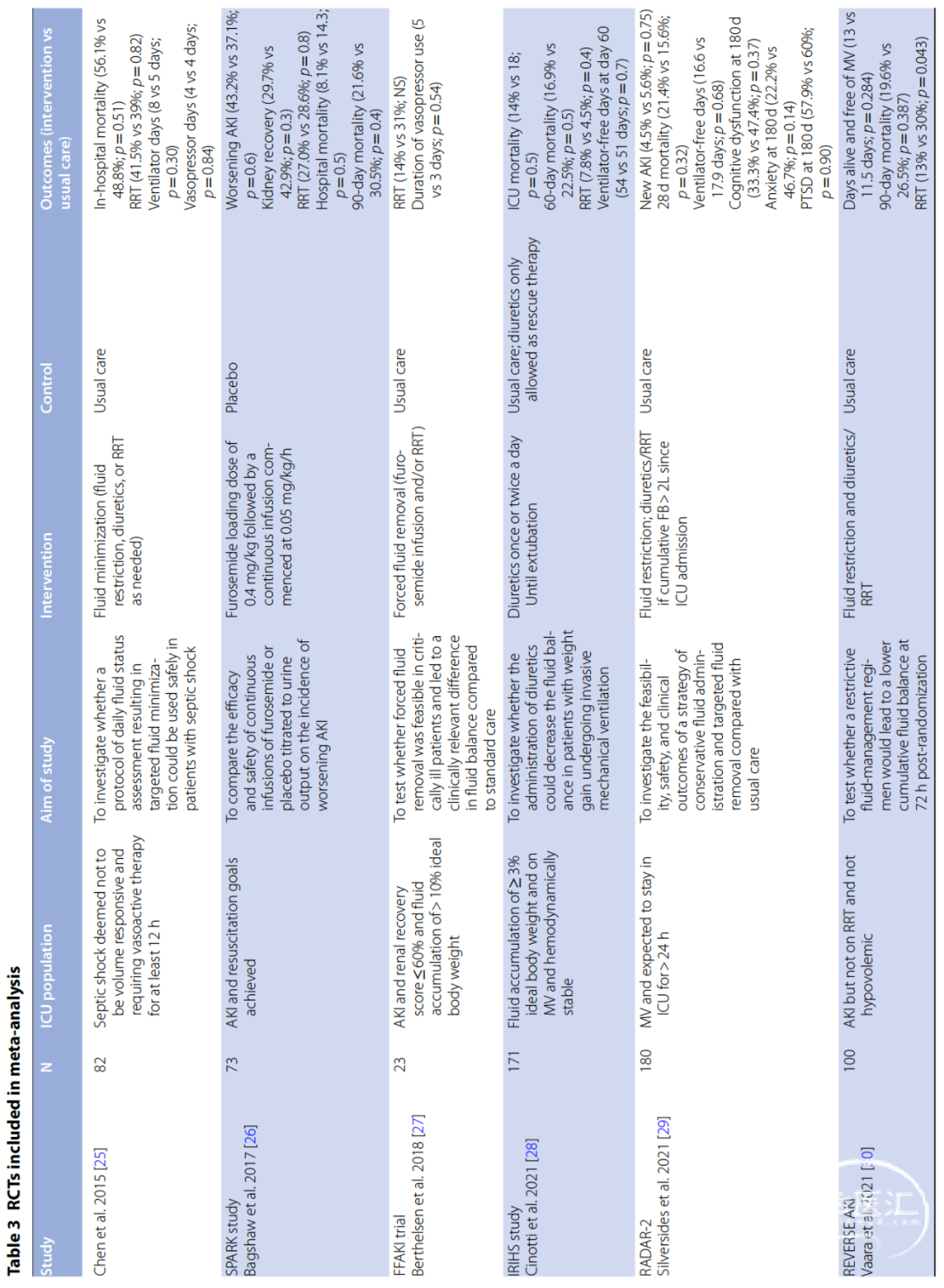 PICO 3:对于危重患者,在液体复苏急性期后,是否应采用基于超滤或体外肾脏替代治疗的计划性液体清除方案,而非非常规治疗(即不采用超滤或体外肾脏替代治疗)?
