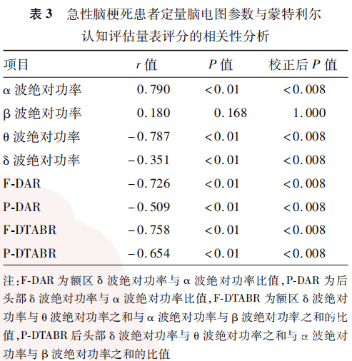 2.3 QEEG参数与患者认知功能的相关性分析