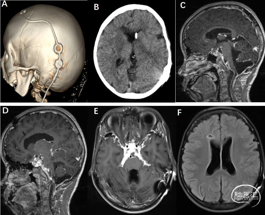 2025年7月12日,患者因摔倒于当地医院就诊,检查提示“蛛网膜下腔出血”。8月29日复查头颅CT提示:脑室系统扩张,脑室系统室管膜下、颈髓内可疑长T1信号。