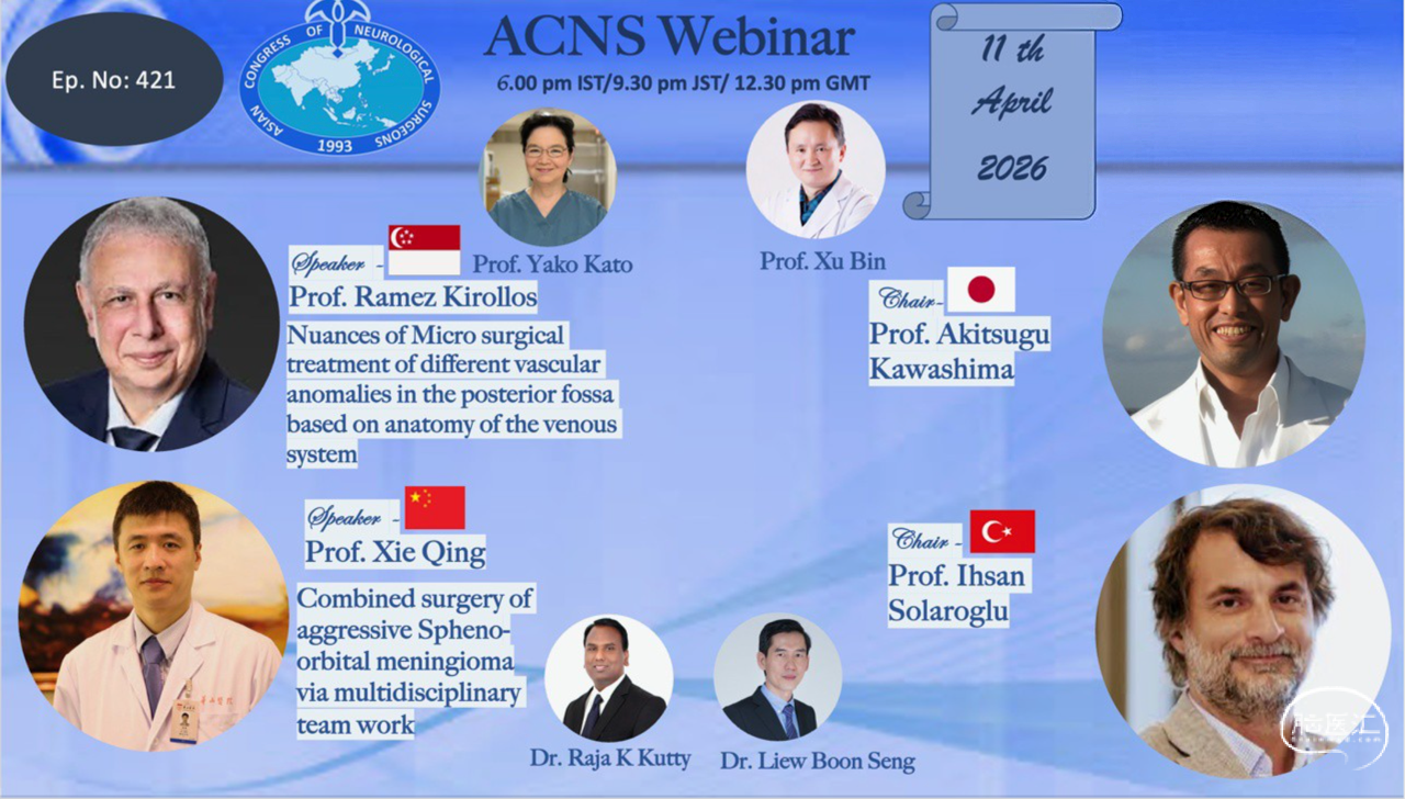 【4月11日20:30直播(附AI双语字幕)】ACNS Webinar,国际神经外科教育与培训系列网课