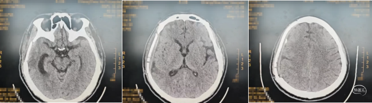 入院诊断:创伤性脑疝,硬膜下血肿,额颞叶脑挫裂伤,蛛网膜下腔出血,枕骨骨折,颅底骨折脑脊液漏,多发肋骨骨折创伤气胸,胸椎横突骨折。