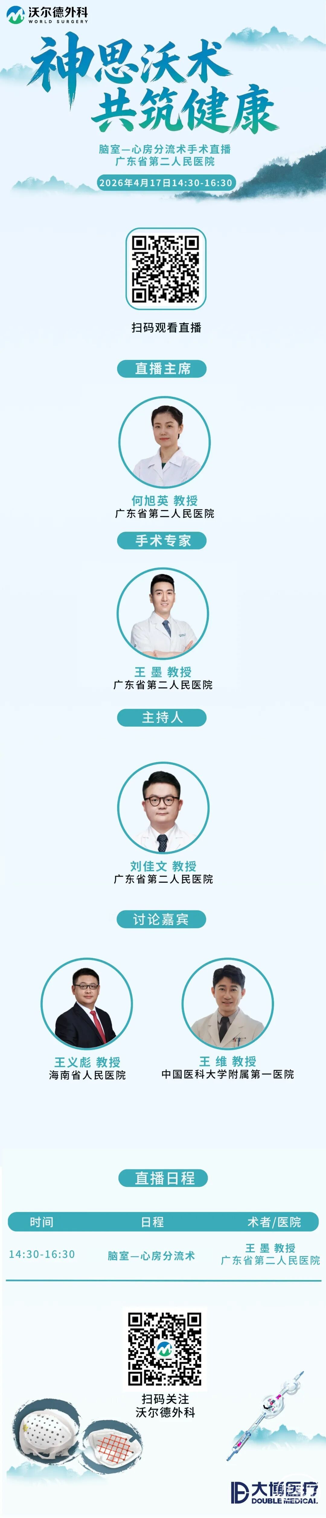 【神思沃术 共筑健康】脑室腹腔分流管植入手术直播广东省第二人民医院,4月17日,欢迎观看!