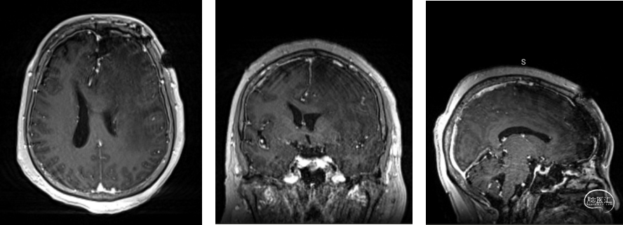 术后增强头颅磁共振显示肿瘤达到全切。