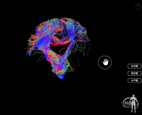 图1:正常中央执行网络的脑网络结构(左图:轴位;中图:冠状位;右图:矢状位)