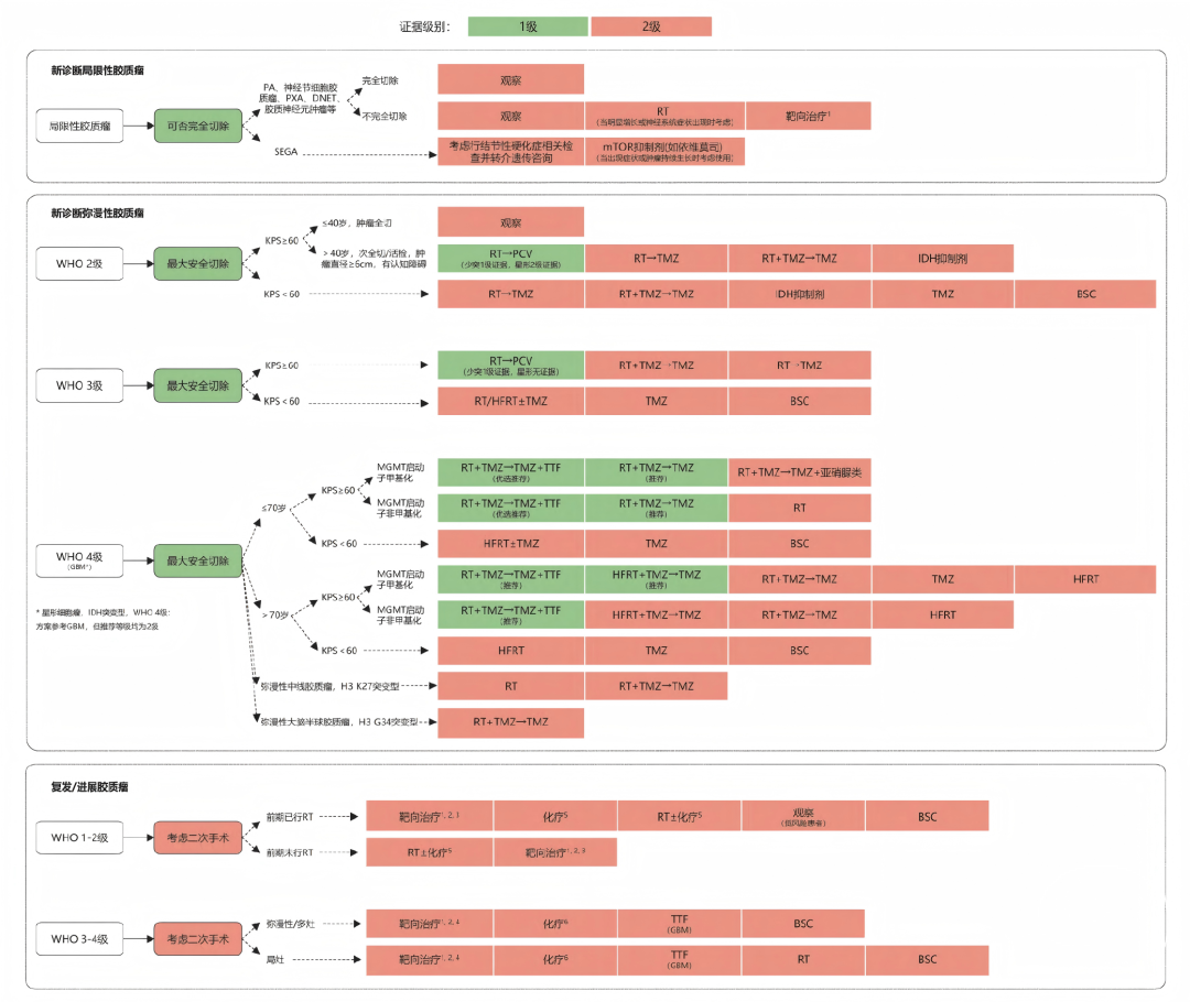 图:胶质瘤临床整合诊疗流程与推荐证据级别