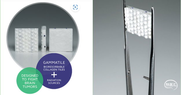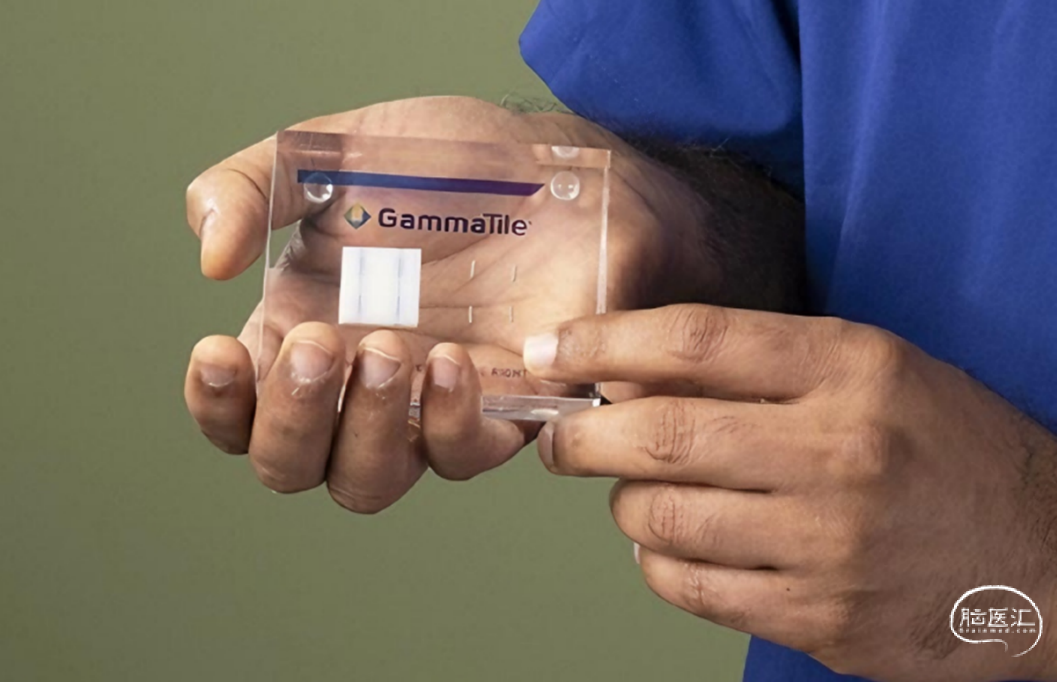 GammaTile(伽马贴)是美国GT Medical Technologies, Inc.(以下简称GT MedTech)开发的一款嵌入铯-131放射性粒子的可生物吸收胶原蛋白植入物,获美国FDA批准用于可手术切除的新确诊及复发性恶性颅内肿瘤患者。作为GT MedTech公司的核心创新产品,其在肿瘤切除术中被植入手术腔,能在术后即刻对病灶部位进行高强度局部放疗,向残留癌细胞释放高放射剂量的同时,最大程度减少对周围健康脑组织的辐射暴露,实现了手术靶向放射治疗(STaRT)的临床落地。