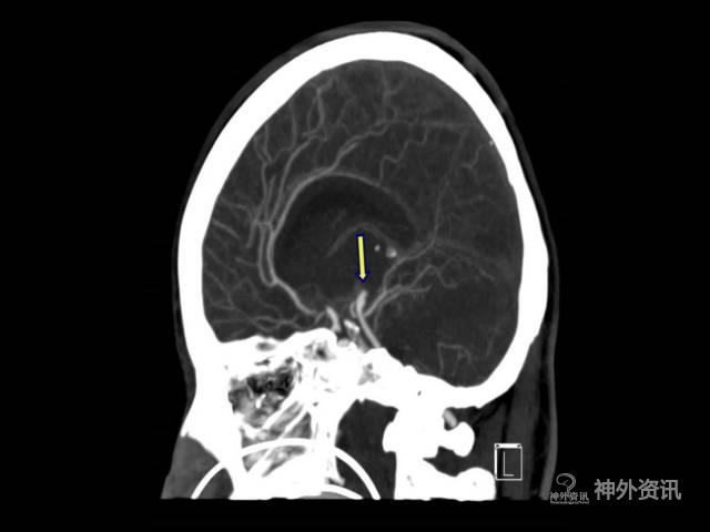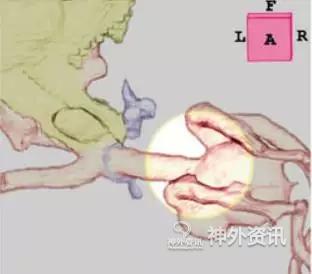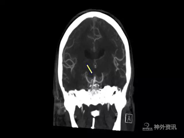 图4. 基底动脉干动脉瘤(瘤颈低于后床突1cm)。