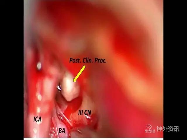 常规的LSO入路或者翼点入路,在行基底动脉瘤夹闭时,确实经常受到后床突的阻挡,有时需要打开海绵窦、磨除后床突,因此依据基底动脉瘤瘤颈和后床突的关系,来选择手术入路十分重要。