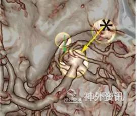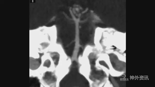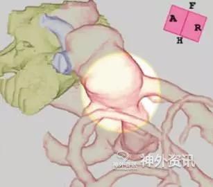 图5. 基底动脉干动脉瘤(瘤颈低于后床突1cm)。