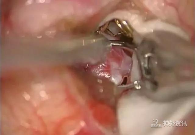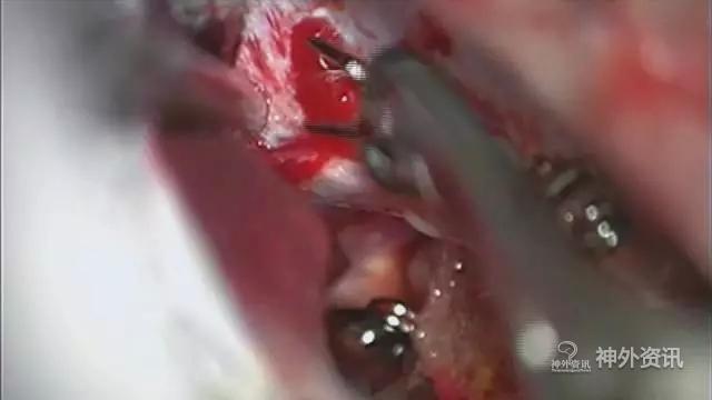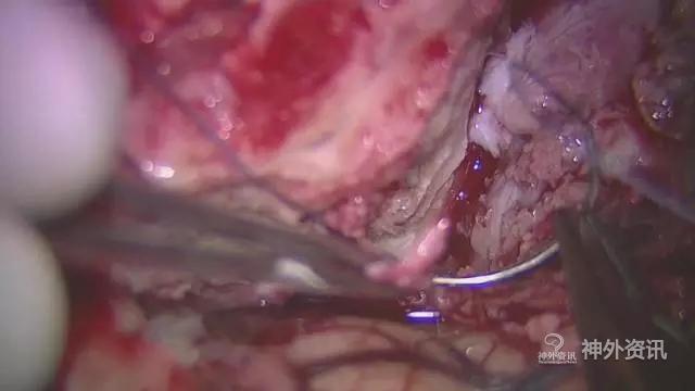 对于颞下入路,在如此深的区域,三个临时阻断夹、基底动脉、双侧大脑后、双侧后交通、滑车、小脑幕、动眼神经均拥在一起,想做到完善夹闭同时不损伤穿支血管,确实是颅底显微外科的一个挑战。